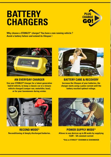 ✅Stanley jest przeznaczony do ładowania akumulatorów AGM, GEL, VRLA oraz WET o pojemności od 80 do 120AH. To sprawia, że jest idealnym narzędziem do ładowania akumulatorów w samochodach hybrydowych oraz tych wyposażonych w system START&STOP.