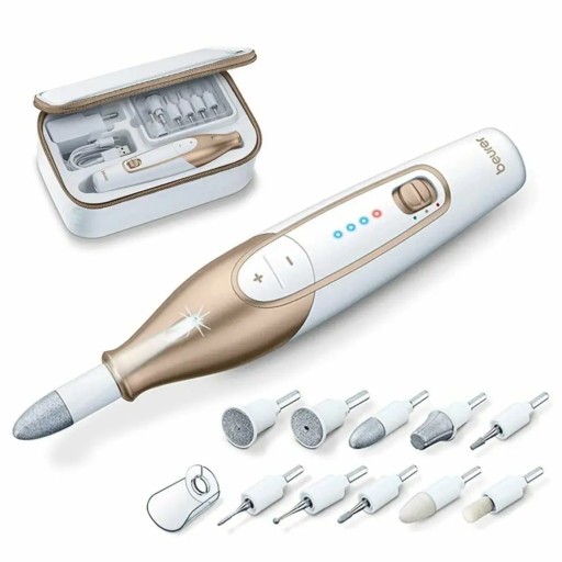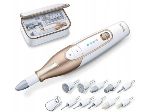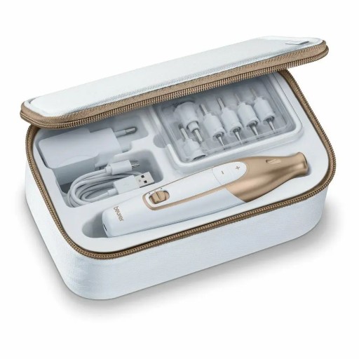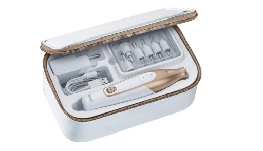 Profesjonalny zestaw do manicure oraz pedicure marki BEURER. Urządzenie przeznaczone jest zarówno dla osób początkujących, jak i profesjonalistów. Pozwala cieszyć się doskonale zadbanymi paznokciami oraz miękką skórą dłoni oraz stóp. Ergonomiczny kształt zapobiega ślizganiu się urządzenia w trakcie zabiegu. Znikający wyświetlacz LED pojawia się tylko w trakcie pracy. Urządzenie posiada złącze mikro-USB.
