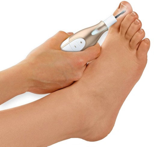 Urządzenie jest zasilane akumulatorowo. Posiada 3 ustawienia prędkości. W zestawie zanajdziesz aż 10 końcówek: stożek szafirowy i stożek filcowy, krążek szafirowy, grubo i drobnoziarnisty, frez walcowy, frez płomieniowy, frez szafirowy i frez do paznokci, szafirowy pilnik - do usuwania szczególnie zrogowaciałego naskórka, oraz pilnik z piasku krystalicznego. Końcówki mogą być stosowane przez diabetyków.