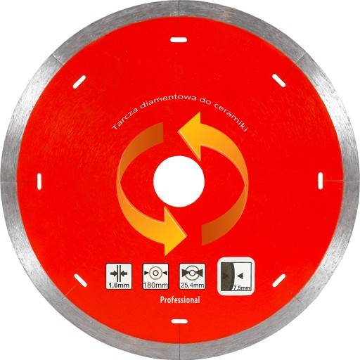 TARCZA DIAMENTOWA DO PŁYTEK CERAMICZNYCH, GLAZURY, TERAKOTY 180x1,6x25,4mm