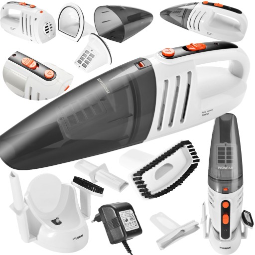 Ręczny akumulatorowy odkurzacz Hyundai do suchego i mokrego odkurzania.Co więcej, jest lekki i kompaktowy. Czas pracy bez zasilania - 15 min.