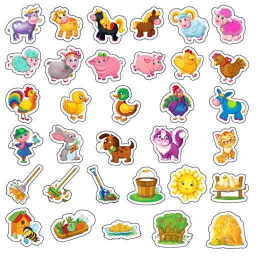 Mój mały świat magnesów Farma to zestaw trójwymiarowych magnesów tematycznych ilustrujących życie na farmie. Układaj magnetyczne puzzle na specjalnej tablicy lub na dowolnej metalowej powierzchni np. na lodówce. Znakomite ilustracje i zrozumiałe dla dzieci obrazki zachęcają do zabawy i opowiadania rozwijając w ten sposób zasób słów i wyobraźnię. Gra z magnesami rozwija także małą motorykę rąk, myślenie twórcze oraz rozszerza pojęcie o otaczającym go świecie.