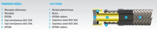 UWAGA ! Wężyki na zdjęciu są wężykami przykładowymi, rozmiar i rodzaj gwintów jest podany w opisie aukcji. Wężyki mają niebieski i czerwony pasek w oplocie !