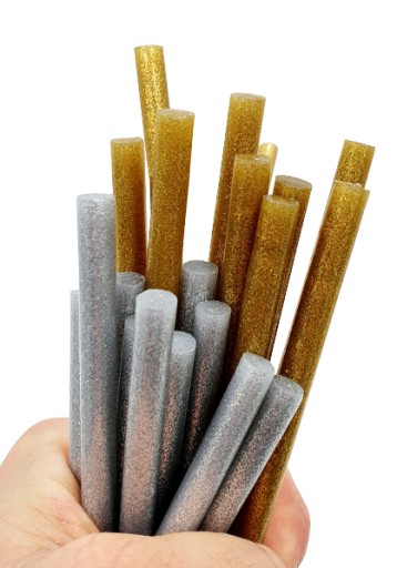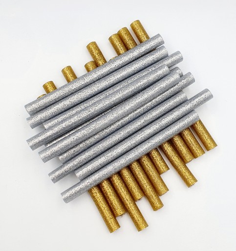 Kolor: DROBNY BROKAT (złoty, srebrny). W każdej paczce znajduje się 22 lasek kleju.