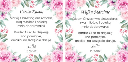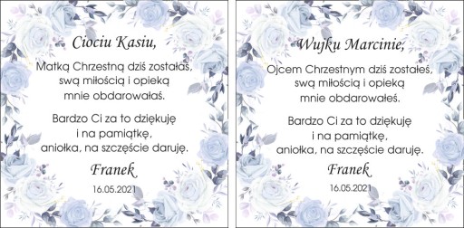 Śliczne podziękowania dla matki chrzestnej i ojca chrzestnego.