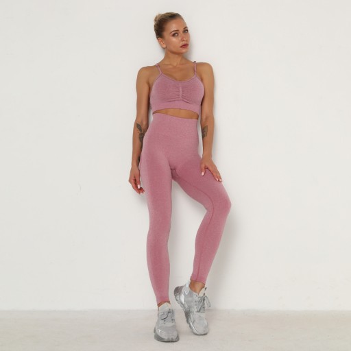 KOMPLET LEGGINSY SPORTOWE PUSH UP BEZSZWOWE TOP MODELUJĄCE WYSOKI STAN S
