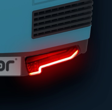 - Wyposażony jest w komplet tylnych świateł samochodowych (wsteczne i przeciwmgielne).