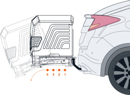 - Łatwy dostęp do bagażnika poprzez wysunięcie i odchylenie skrzyni TowBox od samochodu.