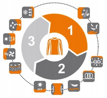 Cechy użytkowe: technologia bezszwowa, mikrowłókna funkcyjne, zwiększona ilość stref wentylacyjnych powietrzne wspomagające cyrkulację powietrza, bardzo skuteczny transfer wilgoci na zewnątrz