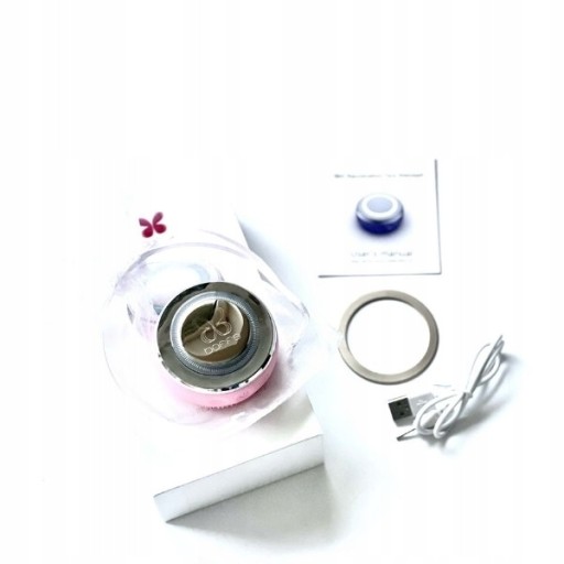1️⃣ Pierwszy program, zawiera w sobie jonizację dodatnią, niebieskie światło, podgrzewanie i nieregularne wibracje. Powinien być stosowany ze standardowym wacikiem kosmetycznym, który przypinamy do urządzenia za pomocą dołączonego do zestawu okręgu. Wacik powinien być nasączony mleczkiem lub płynem micelarnym, nie powinno się stosować olejków czy pianek do oczyszczania twarzy.