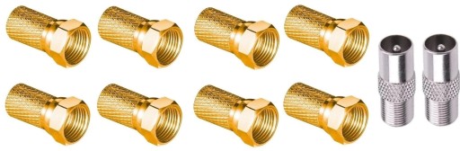 - Zarób końcówki kabla koncentrycznego zgodnie ze schematem, nakręcając na niego wtyki F. Tak przygotowane przewody wkręć do rozgałęźnika.