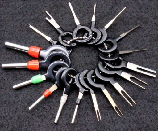 - Zestaw 18 kluczy do demontażu pinów, konektorów