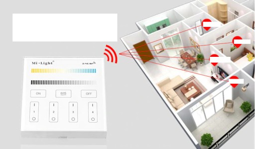 Akcesoria LED marki Mi-Light komunikują się ze sobą za pomocą fal radiowych o wysokiej częstotliwości 2,4 Ghz. Pozwala to na łatwe i szybkie parowanie kontrolerów i ściemniaczy z pilotami. Poszczególne taśmy LED można łączyć w grupy i strefy a później sterować nimi razem lub osobno. Ilość sterowników które można podpiąć do danego pilota jest praktycznie nieograniczona a ogranicza je jedynie zasięg do 30m w pomieszczeniu i do 50m w otwartej przestrzeni. Dzięki komunikacji pilota z kontrolerem za pomocą fal radiowych nie ma potrzeby celowania pilotem w kierunku sterownika. Obsługa oświetlenia LED możliwa jest również za pomocą aplikacji na telefon gdy do sterownika zostanie podłączony mostek WiFi.