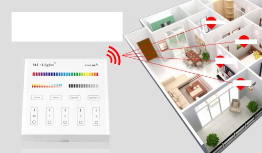 Akcesoria LED marki Mi-Light komunikują się ze sobą za pomocą fal radiowych o wysokiej częstotliwości 2,4 Ghz. Pozwala to na łatwe i szybkie parowanie kontrolerów i ściemniaczy z pilotami. Poszczególne taśmy LED można łączyć w grupy i strefy a później sterować nimi razem lub osobno. Ilość sterowników które można podpiąć do danego pilota jest praktycznie nieograniczona a ogranicza je jedynie zasięg do 30m w pomieszczeniu i do 50m w otwartej przestrzeni. Dzięki komunikacji pilota z kontrolerem za pomocą fal radiowych nie ma potrzeby celowania pilotem w kierunku sterownika. Obsługa oświetlenia LED możliwa jest również za pomocą aplikacji na telefon gdy do sterownika zostanie podłączony mostek WiFi.
