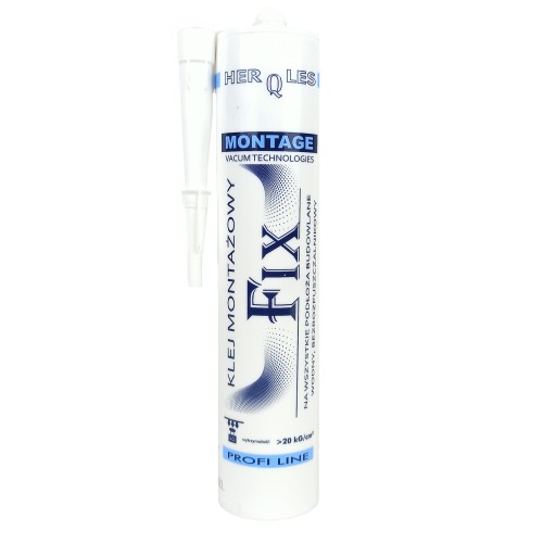 HERQLES FIX to jednoskładnikowy klej nowej generacji na bazie czystych dyspersji akrylowych. Przeznaczony do prac montażowych i wykończeniowych. Charakteryzuje się doskonałą przyczepnością do wszelkich materiałów budowlanych. Służy do klejenia i uszczelniania podłoży gładkich i porowatych takich jak: beton, gips, kamień naturalny ( marmur, piaskowiec, granit itp. ), ceramika budowlana, styrodur, drewno, MDF, OSB, płyta wiórowa i inne materiały drewonopochodne, korek, polistyren, poliester i z tworzyw podobnego typu. Klej posiada szeroką gamę zastosowań np. klejenie progów, parapetów, listew dekoracyjnych, płyt izolacyjnych, płyt kamienia naturalnego, maskownic, obudów, tablic, ekranów, półek itp. Zapewnia wyjątkowo trwałe klejenie ciężkich lub mocno obciążonych elementów.