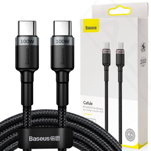 Kabel BASEUS Cafule USB-C - to kabel kompatybilny z technologią Power Delivery 2.0 oraz Quick Charge 3.0, te technologie pozwalają na szybkie ładowanie oraz błyskawiczną transmisję danych do urządzeń wyposażonych w 2x złacza USB-C. Wydajność tego kabla sięga aż 100W, a prędkość transmisji danych oscyluje na poziomie 480 Mbp/s, plik o rozmiarze 1 gigabajta można przesłać w raptem 30 sekund. Długość kabla to 200 cm.