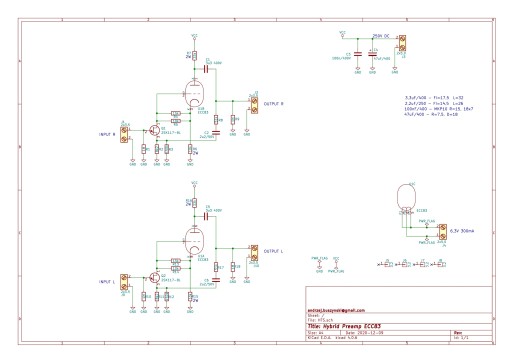 Jest to płytka PCB przedwzmacniacza lampowego JFET o niskim poziomie szumów i niskich zniekształceniach. Obwód zawiera wejście J-FET o niskiej pojemności wejściowej o niskim poziomie szumów (2SK117), a następnie ECC83 (12AX7) jako drugi stopień i wyjście. Zniekształcenia ok 0,005% THD przy 1 Vrms i 0,008% THD przy 2 Vrms.