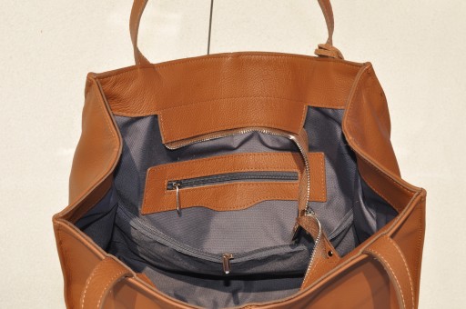 Dostępna na zamówienie w innych kolorach: brąz, granat, bordo, bakłażan, czerwień. Szyjemy tę torebkę także bez podszewki. Wówczas dołączamy skórzany portfelik na klucze oraz skórzaną kieszonkę wewnątrz.