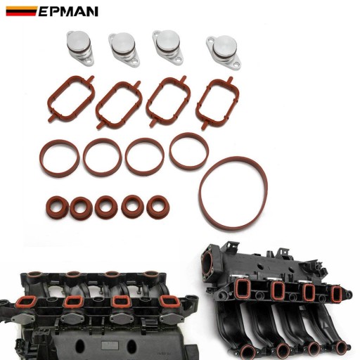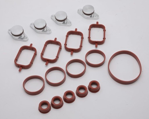 Zestawu 4 sztuk 22mm zaślepek kolektora ssącego BMW z O-Ringami i kompletem uszczelek kolektora ssącego, pierścieni podporowych śrub, oraz uszczelki zaworu recyrkulacji spalin EGR