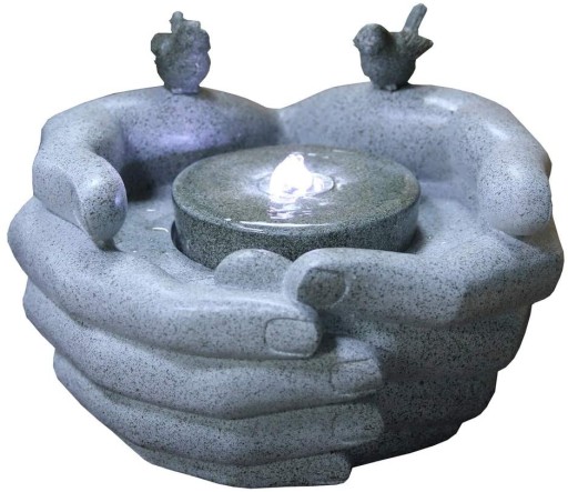 GEEZY Garden Water Feature LED Fountain Indoor/Outdoor Cascading Freestanding Polyresin Garden Statue Lights & Water Decoration (Cupped Hands Fountain)