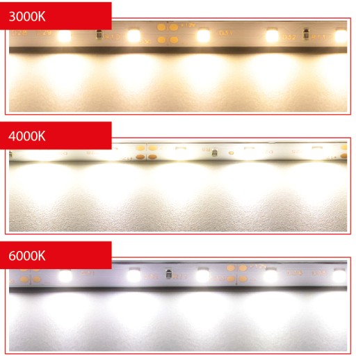 Porównanie barwy światła na przykładzie taśmy LED STANDARD 24W, 300 diod / rolka 5m.