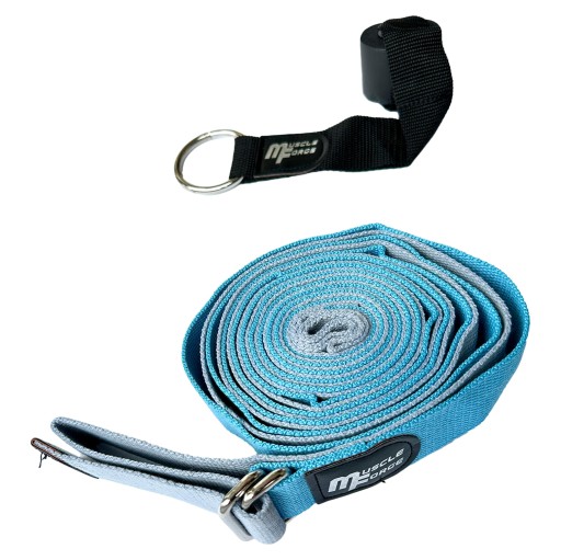 Pas do rozciągania mięśni nóg w zestawie z zaczepem do drzwi jest świetnym narzędziem jeśli trenujesz jogę, balet, sztuki walki, chcesz nauczyć się szpagatu lub po prostu zależy Ci na zwiększonej motoryce ciała i gibkości.