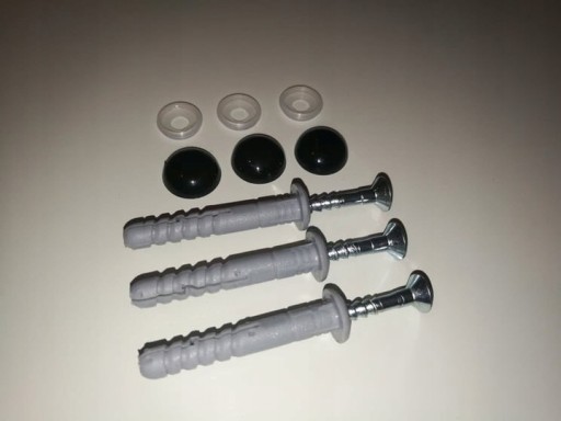 Wieszak należy montować za pomocą kołków z wkrętami dołączonymi do zestawu. W cenie również czarne zaślepki otworów montażowych.