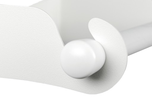 Wieszak wykonany jest ze stali o grubości 2 mm. Malowany proszkowo na kolor BIAŁY MAT. Powłoka lakiernicza jest odporna na zarysowania oraz na kontakt z wodą i wysokimi temperaturami.