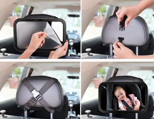 Podstawka lusterka posiada 4 paski mocowane w pionie oraz poziomie, które stabilnie trzymają się zagłówka i nie będą się luzować; nie ma możliwości, że lusterko się zsunie i spadnie na dziecko. Głowica mocująca umożliwia obrót lusterka o 360 stopni dając możliwość dokładnego dopasowania kąta, tak by jak najlepiej widzieć dziecko w lusterku wstecznym.