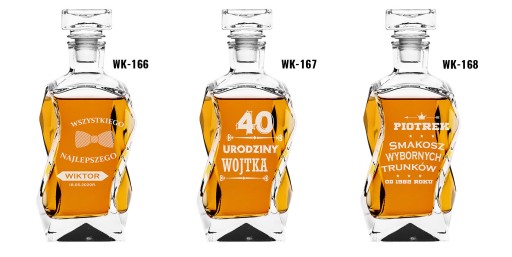 Cena zawiera grawer na przedniej stronie karafki oraz przedniej części skrzynki.