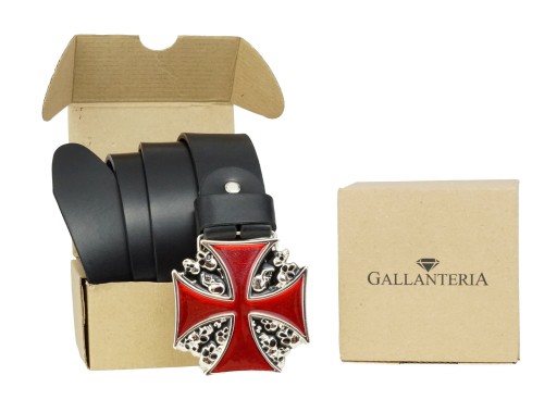 Czarny pasek to połączenie stylu elegancji i swobody w którym odnajdzie się zarówno płeć męska jak żeńska. Pasek posiada piękną metalową klamrę z motywem krzyża maltańskiego otoczonego czaszkami co dodaje mu oryginalności i niepowtarzalności wzoru. Idealny dla fanów dwóch kółek.