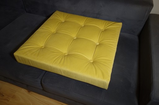 Przykład poduszki 60x60x10 z pikowaniem w kwadraty na pluszu amore 28 żółty musztardowy