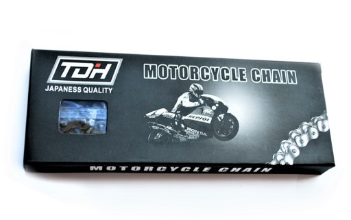 Pasuje do większości motorowerów i motocykli o pojemności 125-200 ccm o mocy do 20KM. . W zestawie tzw. szybka zapinka - szybki montaż. Łańcuch nie wymaga użycia zakuwarki !
