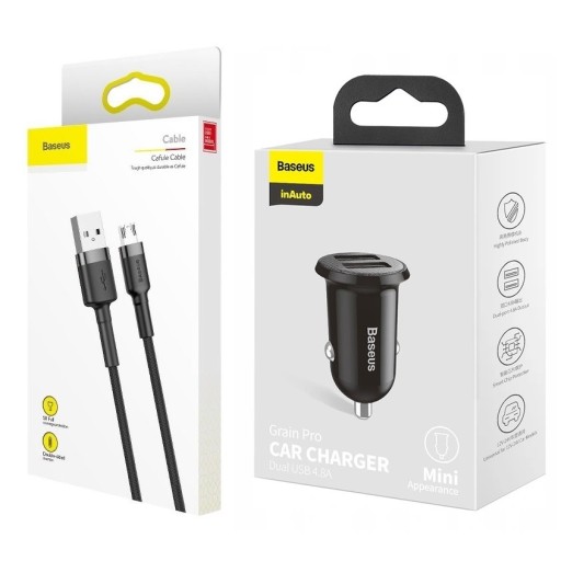 Автомобильное зарядное устройство Baseus с кабелем micro USB длиной 1 м.