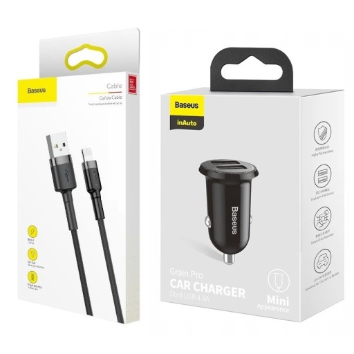 Быстрое автомобильное зарядное устройство 5В 2,4А + прочный кабель для iPhone 2м Baseus