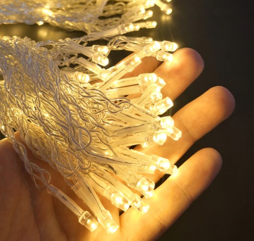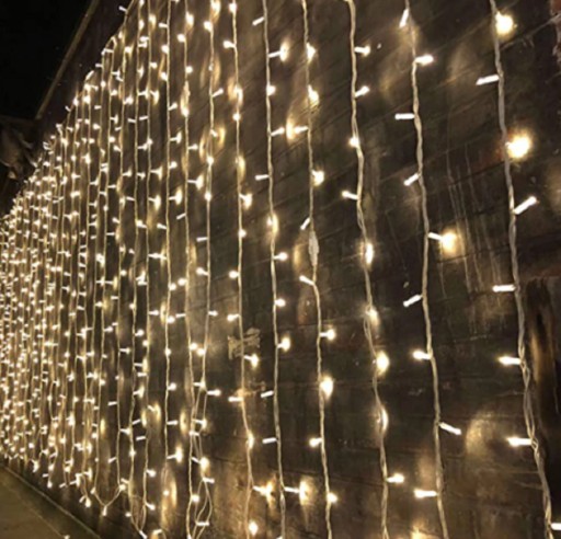 Lampki - kurtyna świetlna LED w barwie światła ciepła biel o rozmiarze świetlnym 2 x 2 m. z funkcją pamięci i dodatkową wtyczką co umożliwia łączenie kilku kurtyn. Można połączyć maksymalnie 4 kurtyny.