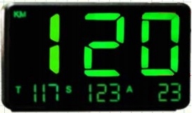 Prędkość wyświetlana od 0 do maksymalnej 255km/h, pokazuje co 1 w górę lub w dół.