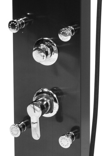 Panel można zamontować w miejscu po tradycyjnej baterii prysznicowej bez konieczności przeróbek hydraulicznych (nie trzeba zmieniać rozstawu rurek w ścianie).