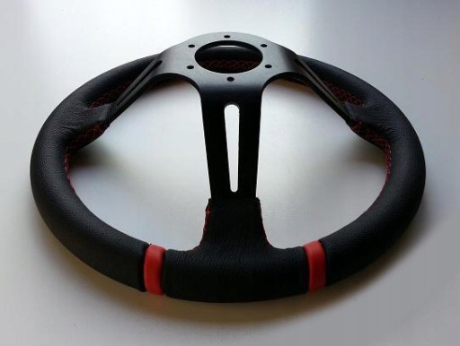 kierownica bardzo solidnie wykonana. Lekka, Grube ramiona - nie wygina się tak jak tanie chińczyki po 150zł. Skóra naturalna, średnica 35cm. Odsadzenie 9cm. Gruba i mocna.