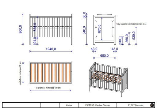 - Pasuje do niego materac 120x60 (niedołączony w zestawie),