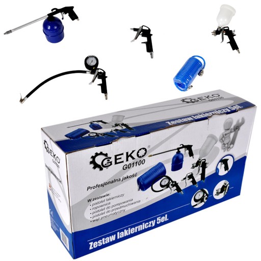 Zestaw zawiera najczęściej używane urządzenia na sprężone powietrze.