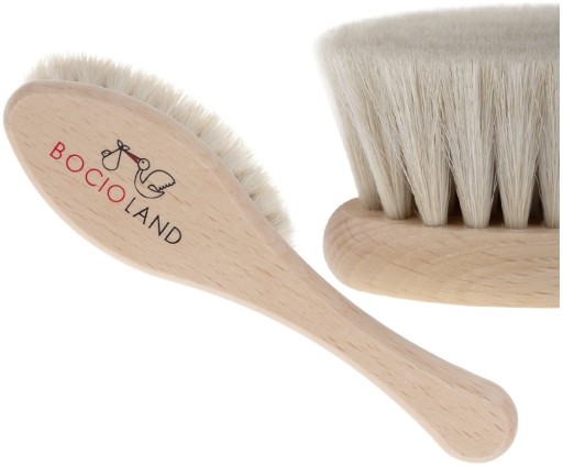 Wykonana z naturalnego włosia koziego oraz drewna bukowego idealnie nadaje się dla maluszka, gdyż bardzo dobrze wyczesuje i masuje skórę głowy, a jednocześnie pomaga pozbyć się ciemieniuchy. Twardość szczotki jest idealnie dopasowana do delikatnej skóry dziecka. Jej kształt jest ergonomiczny dzięki czemu łatwo trzyma się w dłoni.