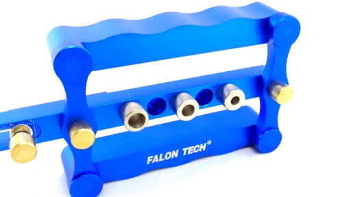 Uniwersalny przyrząd do wyznaczania miejsc wykonywania otworów pod kołki do łączenia drewnianych elementów np. płyt meblowych. Wskazuje środek krawędzi płyt o szerokości od 17 - do 50 mm . Konstrukcja szablonu pozwala na wykonywanie otworów również na płaszczyźnie nie tylko na krawędziach. Wykonany ze stopu na bazie aluminium ,tuleje ustalające o średnicach 6, 8, 10 mm wkręcane w korpus wykonane są z utwardzanej stali. Przyrząd prosty ,skuteczny i precyzyjny do zastosowań profesjonalnych i dla wymagających majsterkowiczów.