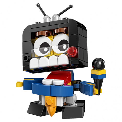 Telewizyjny reporter Screeno wywęszy każdy gorący temat! Ten ubrany w garnitur z krawatem Mixel ma głowę w kształcie telewizora, otwierane usta i lśniący uśmiech, a do tego mikrofon. W 9. serii LEGO® MIXELS™ znajdziesz w sumie 3 przedstawicieli plemienia Newzers. Zbierz ich wszystkich, by mieć więcej zabawy z budowaniem i wymyślaniem historyjek oraz by móc zbudować MAX-a! Screeno możesz także połączyć z Compaxem z plemienia Trashoz, którego znajdziesz w zestawie 41574. W ten sposób powstanie nowy, śmieszny MIX!