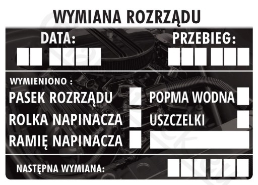 Etykiety na przegląd samochodowy - wymiana rozrządu.