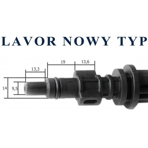 - Rozmiar trzpienia wchodzącego do myjki: 15mm – pasuje do myjek Lavor / Parkside / Bosch / Black&Decker / Nilfisk