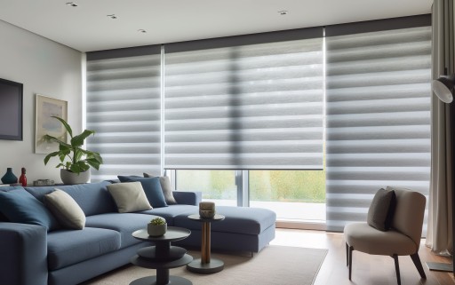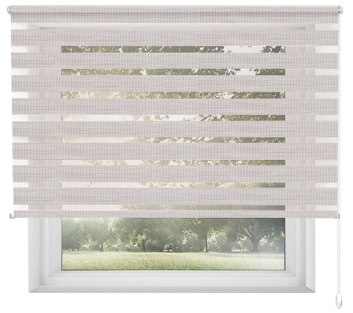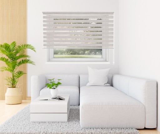 - Dwuwarstwowa tkanina z naprzemiennymi pasami umożliwia regulację ilości światła
