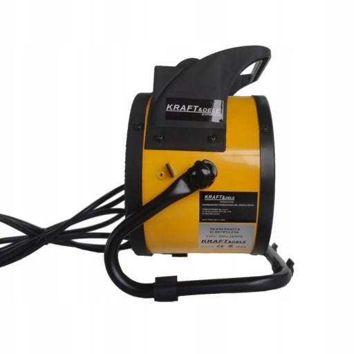 Zasilanie odbywa się zwykłym prądem 230V. Dzięki zastosowanemu wentylatorowi, powietrze pchane jest wokół komory grzewczej co zapewnia maksymalny wydatek ciepłego powietrza. Doskonale sprawdzi się również do osuszania pomieszczeń. W trakcie pracy nie emituje spalin oraz pary wodnej. Posiada solidną grzałkę wykonaną ze stali nierdzewnej. Brak emisji spalin sprawia, iż ta nagrzewnica to idealne rozwiązanie do zamkniętych pomieszczeń, które trudno wentylować, np.
