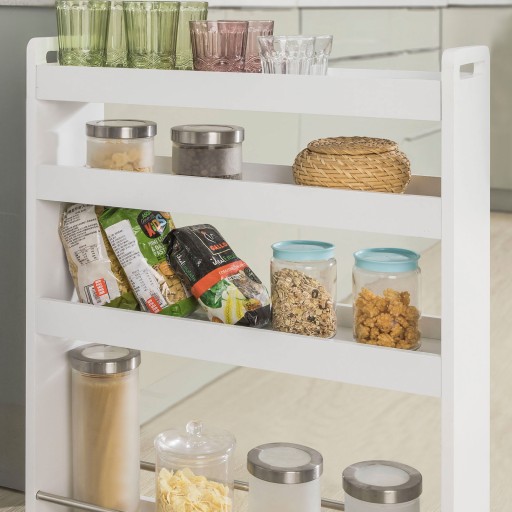 SoBuy® NSR01-W Wózek niszowy z 4 półkami, półka kuchenna na kółkach, biała