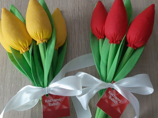 Tulipany z materiału ręcznie robione w różnych kolorach